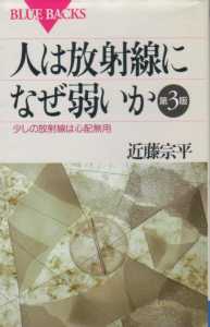 人は放射線になぜ弱いか 近藤宗平 (講談社ブルーバックス) 放射線はどうも怖い存在のように思われている。少しでも放射線を浴びると身体に良くないのか? だが最近は色々なことがわかってきた。 ・・・少しの放射線は身体に良い!? この本は放射線の人体への影響を中心にできるだけ易しく説明しようと心がけられている。内容も豊富で専門分野の方にも好適。 ”近藤節”が随所にみられます。 評:輪嶋隆博 *この書の内容の一部が近藤先生の講演のなかで述べれられております。 |