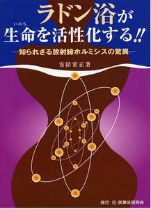 ラドン浴が生命を活性化する!! 安陪常正 民事法研究会 発行 ラドンと聞いて何を連想しますか? 多くの人は温泉を連想するのではないでしょうか。 しかし、ラドンが放射線を出していることを知らない人は多いのではないでしょうか。 前半は、電中研の低線量放射線研究センター設立の経緯などが書かれています。(著者と電中研顧問の服部氏の対談と講演録)後半では、ラドン浴が、生命を活性化するという状況証拠が示されています。放射線ホルミシスについて、他とは違った視点で述べられた1冊です。 これを読むと、ラドン温泉に行きたくなるかも?? (評:佐久間 厚志) |