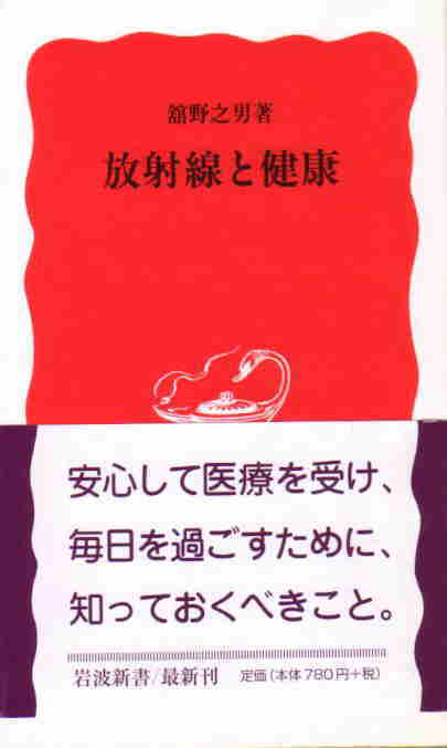 | 放射線と健康 (岩波新書) 舘野之男 近藤先生と同じく正しく放射線を理解するための知識が網羅されております。 放射線障害の語句をあえて放射線”傷害”と使われていることに舘野先生の意図が見えてきます・・・。 一般の方々は勿論 専門領域の分野の教科書としても堪えうるものです。近藤先生とは対照的に淡々と書かれているのが印象的。 評:輪嶋隆博 |