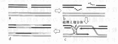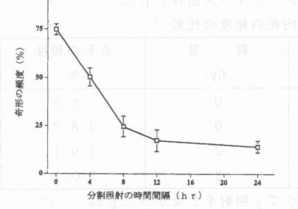 U章 マウスを用いた放射線影響の研究 U‐4 放射線による奇形発生の危険は低線量率照射では消失 U・4・3 γ線低線量率照射での奇形リスク抑制にはP53遺伝子が不可欠 マウス胎仔にγ線2Gyを妊娠9.5日または10.5日に1Gy/分の高線量率で照射したところ、75%または81%の高頻度で奇形が発生した。同じ線量のγ線を27.5時間の長期間で慢性照射(線量率1.2mGy/分)したところ、奇形頻度が9.7%に低すした。この低下した頻度は被ばくしない対照マウスの奇形頻度9.1%に比べて統計的に有意の差はない 15)。以上は扱いやすいICRという系統のマウスを便用した場合の実験結果である。p53遺伝子をノックアウトしたp53(-/-)マウスは、129/SvJ系統のマウスである。この系統のマウスで、p53遺伝子が正常なp53(+/+)マウスとp53(-/-)マウスを使って、低線量率(1.2mGy/分)でγ線を照射して奇形の頻度がp53遺伝子の有無でどのように違うかを調べた。実験結果 15)を表U‐6に示す。 表U‐6 γ線を1.2mGy/分で妊娠9.5-10.5日に照射した場合のp53(+/+)マウス胎仔とp53(-/-)マウス胎仔における奇形と胎内死の頻度の比較 15) ![]() *:危険率pく0.05でγ照射をしなかったp53(-/-)マウス胎仔の奇形頻度と比べて差がある(統計的に有意の差) 表U‐6から、p53(+/+)マウス胎仔の奇形頻度では、γ線を全く浴ぴないときの値8.8%に比べ、2Gyを低線量率で浴ぴた場合は10.1%となったが、両者には統計的に有意の差はない。すなわち、p53遺伝子をもっているマウス胎仔では、高線量率の照射では高い奇形頻度が誘発されるγ線線量2Gyでも、照射時問を27時問に引き伸ばして少しずつ(毎分1.2mGy )照射すると、奇形頻度は自然頻度レベルに滅少した。他方、p53遺伝子を欠損したp53(-/-)マウス胎仔では、少しずつの照射でも奇形頻度は、自然頻度より有意に高いレベルにとどまった(表U‐6の*印参照)。すなわち、マウス胎仔の奇形リスクは、線量率を下げると抑制されるが、このためにはp53遺伝子の存在が不可欠である。 p53(+/+)マウスでは、少しずつ照射すると、高線量率の照射で起こる催奇性障害が抑制されるのは何故か?この答えのヒントが、図U‐18の実験結果からえられる。この図は、γ線の高線量率(1Gy/分)照射のときの総線量2Gyを2分割して、1Gyずつ、t hr(被ばくしない時間帯)をへだてて照射した場合、奇形頻度はtを増やすとどうなるかを示す。妊娠9.5日のマウス胎仔に、2Gyを一気に照射すると(t=0の点)、奇形頻度は75%であるが、分割照射の間隔tを4-8hrに伸ばすと奇形頻度はtに比例して滅少する。これの一番簡単な説明は、γ線の第1回目の1Gyの照射で胎仔組織内細胞にできた催奇性傷害、すなわち、DNAの2本鎖切断(図U‐16)が、4-8hrの「被ばくしない時間帯」の間に25%−50%が修復されると仮定することである。「被ばくしない時間帯」を12hrから24hrへのばしても、奇形頻度はほとんど減らなかったから、第1回の1Gy照射によるDNA損傷は、12hrたつと大部分が修復完了したことが示唆される。 ![]() 図U‐18 奇形頻度とγ線2Gyの2分割照射の時間間隔の関係15)高線量率のγ線を1Gy照射して、t hr(図の横軸の値)たってから、2回目の1Gyを照射。1回目のγ線はICR系統マウスの胎仔に妊娠9.5日に照射。 γ線によるDNA損傷の修復完了に約12時間を要するという別の証拠がつぎのようにしてえられた 15)。 2Gyのγ線を27時間かけてマウス胎仔(妊娠9.5-10.5日)に少しずつ連続照射(線量率=2mGy/分)した。照射開始後のいろんな時間 t hrのところで、神経管細胞のアポトーシス頻度A(%)を測定した。t=0でA=1.5%,t=6hrでA=9%、t=12hrでA=20%,t=27hrでA=21%、これ以後Aはゆっくりと滅少し、t=50hrでA=4%となった。これは、t=12hr以後t=27hrまでは、連続照射をうけてDNA損傷の生成が増加しているのに、アポトーシス頻度は増加しないことを意味する。すなわち、γ線照射開始後12-27hrの期間中、γ線の連続被ばくでDNA損傷の生成は増加しているのに、DNA損傷の密度に比例するアポトーシスの頻度は変化しないのだから、DNA損傷の被ばくによる生成率とDNA損傷の修復による滅少率がほぼ等しいことを意味する。これは、γ線によるDNA損傷の修復完了に要する時間が約12hrであるという考えを支持する。 2本鎖DNA切断の組換え修復 DNAの2本鎖切断の修復には、相同組換え修復HR(homologous recombination repair )と非相同末端再結合修復NHR non-homologousend-joining repair)がある 16)。NHEJは2本鎖の切断端がランダムな塩基配列のDNA鎖で直接に再結合する仕組みで、短い時間内に修復が完了する。これに反して、HRは時間がかかるので、前述の12hrかかる2本鎖DNA切断の修復は多分HRであると思われる。HRは複雑 16)で本報告で紹介する範囲をこえている。ここでは図U‐19に簡単な模型を紹介するにとどめる 2)。 ![]() 図U‐19 2本鎖DNA切断の相同組換え修復の模型 2)。 修復の初期の主要過程と最終過程を図示。 黒棒:切断をうけたDNA鎖白棒:無傷の相同DNA鎖 DNAに2本鎖切断ができても、無傷の相同DNA(図U‐9参照:対立遺伝子は相同DNAの好適な例;同図の姉妹染色体上の複製した遺伝子の一対も相同DNAの例)をそばに引き寄せることができれば(図U