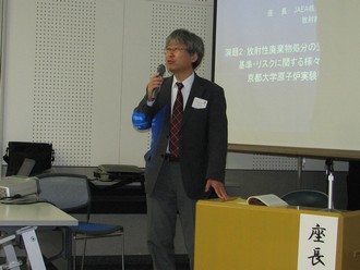 テーマ2:放射性廃棄物の諸問題(10時00分〜12時00分)![]() 座 長: JAEA核燃料サイクル工学研究所放射線管理部部長 古田定昭 基調講演:最近の放射性廃棄物処分に関する指針の諸問題(40分) (写真をクリックすると講演原稿が閲覧できます)原安協処分システム安全研究所所長 杤山 修 |