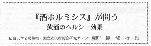滝澤行雄:酒ホルミシスが問う 飲酒のヘルシー効果