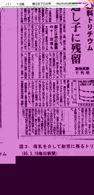 今はなき、広島大学横路教授が、コメントをして下さった。トリチウムが脂質咸分に長く残ることはそれまでにもわかっていたのだが、母乳という食物連鎖を介して仔マウスの脳脂質に、移行することを初めて示した実験結果であった。ただ、この記事では、いささかセンセーショナルな取り扱いになっている。放射能の生物影響を云々する場合には、量的に線量を評価することが必要であり、脳に特に長く残るからといって、ただちにトリチウムを悪者扱いすることは早計である。