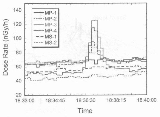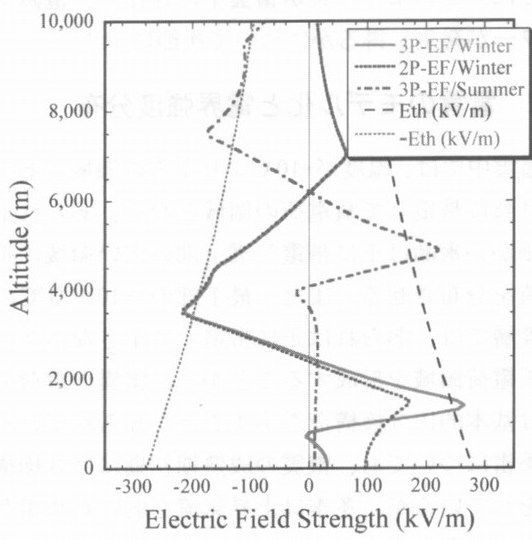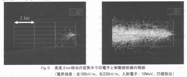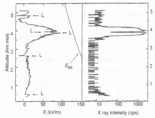はじめに 雷−太古から存在し、洋の東西を問わず神話にも登場する人類と関わりの深い自然現象であることはいうまでもないが、最近まで分からなかったこと、そして今もって分からない事象も決して少なくない。成層圏上部から電離圏にかけて雷放電時に見られるブルージェットやスプライト、エルブスと呼ばれる高高度での発光現象が発見され、研究が行われるようになったのは最近である。雷雲、もしくは雷放電からの放射線発生を示唆する現象についても最近明らかになりつつある現象の一つである。 しかし、雷雲から放射線が放出される可能性について言及されたのは意外に古い。1925年に英国のC.T.R.Wilsonは大気中の放射性物質が放出するβ線の内、エネルギーが高いものは雷雲の高電界によって加速され、空気分子との衝突によって多量の2次電子や制動放射線が放出されると予測した (1)。当時はまだ宇宙線の由来が明らかになっていなかった時代である。Wilsonは雷雲の上部に正電荷が蓄積され下部に負電荷が蓄積されることから、大気中に放出されたβ線は上方に加速され、やがて地球磁場により曲げられて再び地上に降ってくる、これが宇宙線であると推測したようである (2)。 以後、少なからぬ研究者が雷雲もしくは雷放電からの放射線を測定しようと試みている。1930年代から1960年代にかけて、雷活動による放射線が「観測された」、「されない」という互いに相反する観測結果が示されている。しかし、当時の放射線計測技術の水準を考慮すれば、必ずしも雷活動に起因する放射線発生を裏付ける証拠はなかったといえよう。 しかし、ここ20年の研究から、以下に示すように、航空機や気球、人工衛星により雷雲中や雷雲上空でも放射線発生を示す事例が報告されてきている。また、国内でも冬季雷等で同様の事例が地上で観測されている。 1.雷からの放射線観測 米国のParksら (3,4)は、ジェット機の操縦席後部にNaIシンチレーション検出器を用いた放射線計測システム(Active)とシンチレータを取り外し光電子増倍管のみを取り付けたノイズ弁別用の計測システム(Passive)を搭載して雷雲内を飛行し、放射線強度の変動を測定している。彼らの測定結果をFig-1に示す。 ![]() Fig‐1ジエット機で測定された雷雲中での放射線変動の測定結果(4) また、同じく米国のEackらは気球にNaI検出器と電界強度計を搭載し雷雲に向けて放球し放射線強度と電界強度の同時観測を行っている。 Fig-2 に示すように、雷雲内の高電界領域で放射線の計数率が急激に上昇していることが分かる (5)。 ![]() Fig-2 気球観測により得られた電解強度と放射線測定結果の変動 これらの観測により得られた測定結果は、以下のようないくつかの共通した特徴を有している。 ・雷雲内においてX線強度(計数率)が1,2桁上昇する。しかし、Passiveシステムは有意な変動はない(ジェット機)。 ・X線強度が上昇した範囲は数100m以上である(ジェット機:水平的な広がり、気球:鉛直方向の広がり)。 ・X線強度の上昇は雷放電より前に出現(ジェット機:数秒以上前、気球:〜1分)し、雷放電とともに下がる。 ・雷放電後、電界強度は復帰してもX線強度は追随しない事象もある(気球)。 ・計数率が上昇したX線のエネルギー領域は、数10keVが中心である。 一方、国内でも宇宙線研究グルーブと原子力発電所周辺の環境モニタリンググループにより雷活動に起因すると考えられる放射線強度の上昇に関する観測事例が報告されている。 乗鞍観測所(標高2,770m )での宇宙線観測では、雷活動に起因すると考えられる宇宙線強度の変動が観測されている (6)。変動が見られた宇宙線は電子、陽電子、γ線のいずれかと考えられ、その時間は10分間程度である。 また、環境モニタリングでの放射線量(率)の変動はすべて冬の日本海側で発生する冬季雷の活動に起因すると考えられるもので、原子力発電所周辺に設置してあるモニタリングポスト等の環境放射線モニタの指示値上昇や一定期間の積算線量を測る熱ルミネセンス線量計(TLD)等の線量上昇に関するものである (7,8,9)。 以下に、筆者らが観測した冬季雷活動時における放射線測定について述べる。 2.もんじゆ周辺での観測 もんじゆ建設所周辺でのここ数年の観測において環境放射線モニタの指示値上昇が最も大きなものは、1997年1月29日に発生した事象である。このとき、建設所構内の5基、構外に設置されているモニタ1基の計6基の環境放射線モニタの指示値が上昇している。当日は敦賀半島一帯で雷が鳴り続けていたが、指示値が上昇したのは午前4時30分頃に発生した事象の1回だけであった (8)。 また、環境測定用に建設所構内各所に設置されているTLDや建物屋上・外壁に設置されているTLDを回収し測定したところ、これらの積算線量も平常の変動範囲を大きく上回るものが多数あった。 ![]() Fig.3 もんじゅで測定された雷活動によると考えられるTLDの線量上昇 Fig-3にそのときの環境測定用TLDと建物の外壁・屋上に設置したTLDの測定結果からその