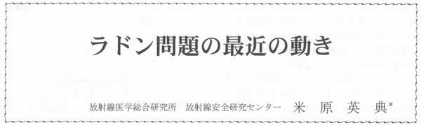内のラドンが重要な問題であることが示された。さらに1984年に米国で原発の労働者が作業に入る前の モニターによるチェックでラドンの被ばくが検出された事件が米国の住居内ラドン測定を促進し、これ