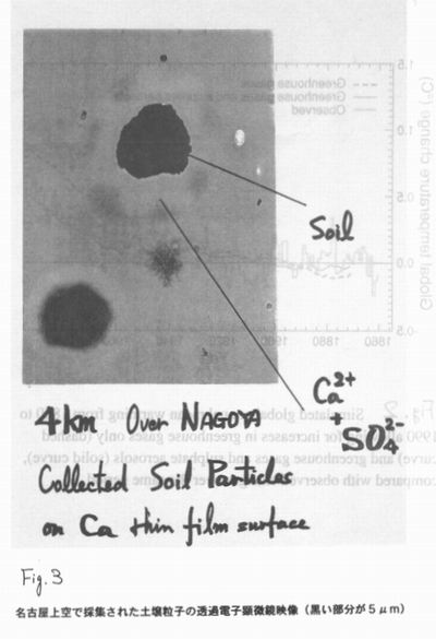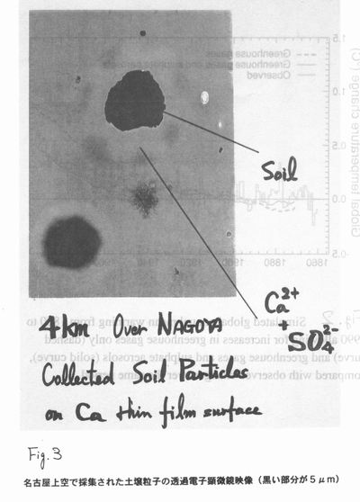4、まとめ アジア地域の乾燥地帯が、世界のなかでも際立って多量の土壌粒子を放出している地域であるとの認識が新たにされるようになってきた。それは、それらの粒子の存在が、大気の状態に大きく左右されると同時に、放射や環境の酸性化に対して大きな影響を与えている可能性が明らかになされるようになってきたためである。 中国で行なわれた気球観測でも、自由対流闇中で硫酸塩粒子と並んで土壌粒子が頻繁に認められており(図5)、‘土壌粒子の環境影響要因としての役割の解明’は、すくなくとも東アジア地域では酸性雨の問題でもあり地球温暖化の問題でもある。一見、日常生活の上では不要なもの、そして研究対象としてはマイナーなものとみなされがちな黄砂を取り上げて、地球環境を考えるうえで物事を平板なとらえ方をすると実り少ないかもしれないことを主張したつもりである。 |