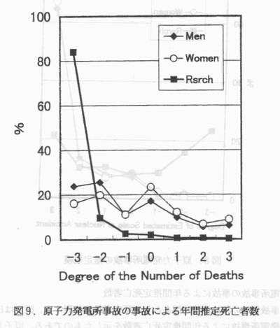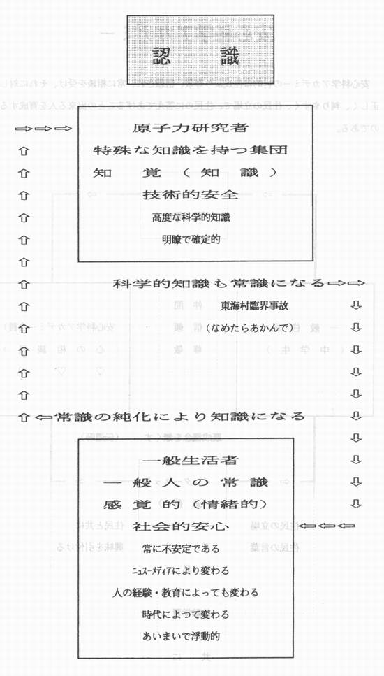 1.概要 原子力の技術的安全と社会的安心の乖離がどのような実相を呈しているかを明らかにするための意識調査を行った。安全と安心の乖離は極めて多面的であり、単一の要因のみで説明されるものではないが、ここでは一般峻u_wakasa_tsujimoto4s.jpg" width="550" height="1478" border="0"> 質問1 : あなたはこれからのエネルギー源として「原子力発電」を推進するこ とに賛成しますか、反対しますか。 回答1 1 賛成 2.反2対 3.その他 質問2 もし仮にあなたの住んでいる市町村に原子力発電が(さらに)出来ることになったら、あなたは賛成しますか、反対しますか。 回答2 : 1.賛成 2.反対 3.その他 (4)原子力発電所事故の発生推測確率分布 原子力発電について人命に関わるような事故が起こる確率について、巾般生活者と原子力研究者の回答の分布を図7に示す。両者間での分布に著しく異なっている事がわかる。一般生活者の常識は常にネガティプ志向である。原子力研究者は原子力発電についての知識があるので、事故の発生推測確率は低い。しかし、今度の東海村臨界事故で様相は変わるかも知れないが。 ![]() (5)原子力発電所事故の推定規模 原子力発電について一回の事故害で死亡する人の数について、一般生活者と原子力研究者の回答の分布を図8に示す。この結果によれば、一般生活者は事故による死亡者数は極めて多いものと思っている。 ![]() (6)原子力発電所事故の事故による年間推定死亡者数 事故確率と事故規模の積は単位時間あたりの死亡者数に比例する。図9は日本国内において、原子力発電所事故による年間推定死亡者数を示したものである。原子力研究者は死亡者数はほとんどないと思うが圧倒的であるいが、一般生活者は有ると思っている。 4.まとめ 技術的安全と社会的安心の乖離を解消するために、国、自治体、電力等で一般住民に対して原子力の理解を得るための活動が非常に精力的に行われている。さらに原子力学会等に置いても、住民と専門家の橋渡し役としてオープンスクール等を催して活動している。 しかし、総理府が平成11年8月21日発表した「エネルギーに関する世論調査」によれば国民の7割が原子力発電に不安をもっていることがわかった。これは1978年に実施した世論調査より増加している。今までの活動を考え直す必要があるのではないだろうか。 今回の調査結果からでもわかるように、これからは原子力を知覚として理解して頂く必要があるのではないだろうか。それには一般住民を対象に原子力の正しい教育を行う必要があるのではないだろうか。それには小学生の高学年および中学生程度より正しい教育が必要ではないかろうか。これには学校で行う教育と課外教育とがある。前者について次世代の教育として、別のテーマで議論を行うので、ここでは、課外教育について述べることにする。 これからの住民教育は住民からの素朴な質問に答えなければならない。それには既成概念を捨て、住民の言葉で答える必要がある。それには、前提条件として、住民より信頼され、尊敬されている人が必要である。そして住民の立場にたち、正しく、判りやすく、住民の言葉で答えてあげる人を育成する必要がある。この様なことをする組織を安心科学アカデミーである。安心科学アカデミーの概略図を別紙に示す。 ![]() ![]() ![]() |