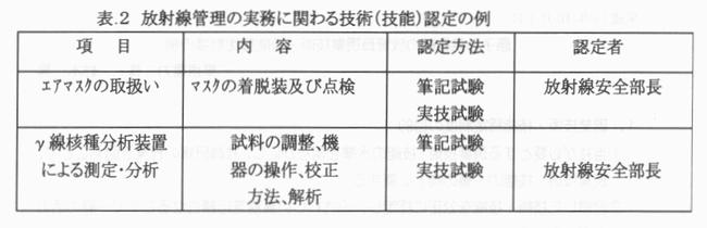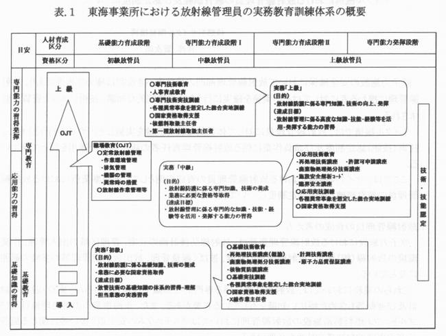 原子力施設の安全確保において放射線管理部門の果たすべき役割は極めて重要であり、放射線管理に携わる者に対してはその実務を確実に行うための専門的な知識、技術レベ ルと資質が要求される。 サイクル機構では、放射線管理員に対して体系的な教育訓練を実施しその育成を行うとともに、技術(技能)認定制度及び請負作業に係る放射線管理責任者の認定制度の運用を図って来ている。 ここでは、サイクル機構における放射線管理員の育成の例として、東海事業所における放射線管理員の教育訓練と技術認定制度について紹介を行う。 1.放射線管理員の育成の考え方 原子力施設における放射線管理業務は、放射線防護計画の立案、管理区域の出入管理、作業環境の放射線(能)測定、放射線作業の管理、被ばく線量管理、放出放射能管理等の多岐の範囲に及んでいる。これらの業務においては、放射線防護に係る専門的な知識や技術はもちろん、施設・設備の設計及び運転等も含めた幅広い知識を有している必要がある。また、 東海事業所の再処理施設及びプルトニウム燃料製造施設の放射線管理においてはプルトニウムの安全取り扱い等に関わる施設特有の専門的な知識や技術も必要である。 東海事業所では、放射線管理員が必要な知識や技術を習得し資質を高めるとともに、技術やノウハウ等を維持、継承して行くために、体系的な教育訓練を行っている。また、放射線管理の実務に携わる者の専門家としての自覚、意識の高揚を図ることや、知識・技術の水準を明確にして放射線安全に係る信頼性を確保するために、技術・技能に係わる認定制度の検討も行っている。 2.教育訓練の体系 放射線管理員の教育訓練は、(1)法令・保安規定等に基づく「保安教育訓練」、(2)各部門での業務遂行に必要な知識、技術を習得するための「実務教育訓練」、(3)人事部門が行う 「人事教育」、(4)講習会やセミナー等の参加による「外部教育」により実施している。 このうち、放射線管理要員に対する専門的な知識、技術の習得については、所属部門で行われる実務教育訓練(OJT含む)と、教育研修所で行われる専門教育(放射線防護講座、放射線計測講座、核燃料技術講座、監督者安全講座等の種々のカリキュラムが整備され、個人の育成の過程に応じた講座を受講するシステムとなっている)を主体に実施している。 更に、放射線管理員の育成においては、長期的な人材育成の観点から、初級、中級、上級の階層レベルに基づいた計画的な教育訓練体系の整備を行うとともに、カリキュラムや教材等の充実、適切な評価の方法等の検討を図って来ている。表.1に東海事業所における放射線管理員の実務教育訓練に関する教育訓練体系の概要を示す。 ![]() 3.技術(技能)認定制度の検討 東海事業所においては、2.で示した教育訓練体系による放射線管理員の育成とともに、放射線管理の実務に係る技術(技能)認定制度の運用を図ってきている。 認定制度については、 1).技術・技能認定の水準を明らかにし、当該技術・技能の一層の向上に資する 2).習得した技術・技能を公正に認定し、意識の高揚に資する 3)技術・技能に対する信頼感の向上に資する等を目的としており、現状では、放射線管理に係わる実務のうち特に専門的な技術・技能を必要とする項目を対象としている。 技術(技能)認定制度の項目と内容、認定の方法の例を表.2に示す。技術・技能の認定 審査は筆記試験と実技試験により実施するものとし、その内容はあらかじめ認定委員会の承認を得たものとしている。 ![]() 4.放射線管理責任者認定制度 再処理施設等においては多くの機器の点検や補修等が請負契約により行われている。管理区域内で行われる請負作業に係る安全の確保のため、放射線管理の責任者に対し、知識及び技術レベルの確保と本人への自覚を促すことを目的とした「放射線管理責任者認定制度」を運用している。 (認定条件) ・放射線管理の実務(原則3年以上)を有する者又は第一種放射線取扱主任者、核燃料取扱主任者のいずれかの資格を有する者 ・上記の条件に加え、事業所が行う「放射線管理責任者教育」を終了した者 5.まとめ サイクル機構においては、放射線防護の実務に携わる放射線管理員の育成のため、 (1)放射線防護の専門知識・技術、施設の安全設計等の幅広い知識を含めた体系的なカリキュラム、教材等の整備 (2)基礎能力育成、専門能力育成、専門能力発揮のステップに応じた計画的な育成 (3)実践的で効果的な教育、訓練の実施(シナリオレス訓練等含む) (4)個人の経験、ノウハウ等を教育訓練に活かし、組織としてのレベル向上に反映 (5)データベースによる教育訓練履歴の管理と活用 (6)技術水準の明確化、自覚・意識の高揚等のための技術(技能)認定制度の運用 (7)請負作業等における放射線管理員の技術、資質レベルの確保等の観点を考慮し、更に教育訓練及び認定制度の充実を図って行く予定である。 |