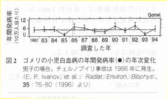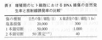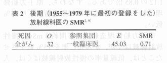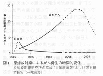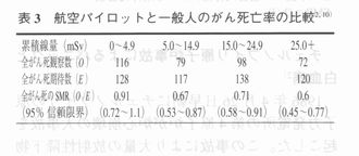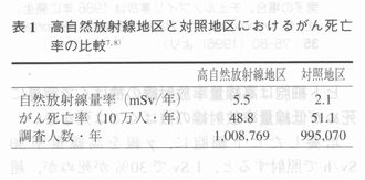 放射線の功罪 日本人は世界一長寿の民族である。これは日本列島の自然環境と日本人の民族的特性及び医療の高い普及率のおかげであると思われる。 医療の進歩は放射線の利用なしにはありえない。日本でぱX線CT(コンピュータ断層撮影)装置が世界一普及していて,病気診断のためのX線CT検査の件数も世界一である。一方,米国や欧州のがん治療では,がん患者の60%は放射線によるがん治療を受けている。しかし,日本では,放射線によるがん治療は普及が遅れていて,がん患者の20%しか放射線治療を受けていない。 放射線利用の恩恵は,医療以外の分野でも広範囲に及んでいるが,万一にも放射線を大量に全身に浴びるような事故が起こると,大変危険である。広島の原爆被爆では,被爆直後の1年内の死者数6万4千人のうちの5%にあたる3千人の死亡の原因が放射線による被ばくであり,95%の死因は強烈な爆風と超高温の熱線であった1・2)。 1999年9月30日,(株)ジェー・シー・オーの東海村ウラン転換加工施設では,235U核分裂の臨界事故が起こり,事故を起こした沈殿槽に密着していた作業員2人は,それぞれ約20 SV と約8 SV を被ばくし,83日と211日経って死亡したが,沈殿槽から少し離れた所にいた1人は,被ばく線量約3 SVで大事に至らないで肋かった 3)。 原子爆弾による放射線(原爆放射線)被ばく者の中には,被ばく後にがんで死ぬ人が,放射線を浴びなかった人より多い傾向がみられ,その総数は1997年末までに約1,100名に達しかと推定されている 4)。 放射線によるがん死亡の危険の概要 原爆放射線を浴びて生き残った人たちの中から,被ばく後がんで死亡する人が,被ばくしなかった人より少しずつ増加し始め,固形がんではその傾向は今も続いている(図1)。 図1の原爆放射線被ばく者に発生したがんは,放射線を浴びなかった人に発生したがんと同種類のがんであって,原爆放射線特有のがんが発生したわけではない。 ![]() 原爆放射線の被ばくによって増えたがん死亡率Fは,披ばく線量p(SV)にほぼ直線比例して次式に従って増加した6)。 F=0.2+0.08D; ただし,D>0.1Sv (1) 被ばく線量Dが0.1 SV以下の場合は,式(1)が成立するかどうかは,原爆放射線被ばく者の調査結果からは解明できていない。 低線量放射線の被ばくとがん死亡率の関係 中国広東省陽江県には,自然放射線が普通地区より約3倍高い地区が存在する 2)7)。この高自然放射線地区と比較するため,隣の恩平県に普通レベルの自然放射線地区(対照地区)を選んで,両地区のがん死亡数を1970〜1986年間にわたって調べた7・8)。表1に示すように,毎年の自然放射線披ばく量が約3 mSV 高い高自然放射線地区のがん死亡率が対照地区より低い。この差は統計的に有意ではないが,年間被ばく線量が数mSV高くてもがん死亡リスク増加の危険はないことを示唆する。 ![]() ![]() 英国の放射線科医の100年間(1897〜1997年)の死亡率の調査結果が発表されている 2,9)。 放射線科医の観察死亡数(O)と放射線を浴びない参照集団の死亡率を用いて計算した期待死亡数(E)の比O/Eを,SMR(standardized mo-tality ratio ; 標準化死亡比)と呼ぶ。Eは次式で求める2・9)。 E=n1P1+n2P2+・・・・・+nkPk (2) ここにniは放射線科医集団のi番目の年齢階級の人数,P1は参照集団のi番目の年齢階級の死亡率,kは調査集団で採用した年齢階級数である。表2は,後期に登録をした放射線科医のがん死亡率のSMR値を,参照集団にX線を使わない一般臨床医を選んだ場合について示す。この時期の放射線科医は,年間約5 mSV の放射線を被ばくし続けたと推定されている2,9)ので,20年臨床現場に勤務したとすると,生涯被ばく線量は0.1 SV となる。この程度の低線量被ばくでは,がん死亡率は,放射線被ばくゼロの一般臨床医より,29%も低下したことを表2は示す。 定期航空便のパイロットは飛行中の宇宙線被ばくで,年間数mSV地上の一般人より余分に放射線を被ばくしている 2,10)。欧州のパイロットの1960〜1997年間の調査で,表3のような報告がある。 表3の航空パイロットの累積線量が25 mSV以上の例でいえば,パイロットのがん死亡率は同じ国の一般人(男性)の死亡率を1とした場合に,0.6であるということである。この0.6の値は,統計的信頼限界95%の範囲内で,0.45と0.77の間にある。 したがって,パイロットは,25 mSV 以上一般人より余計に被ばくしても,がん死亡率が一般人より増加する危険はないという確証が得られたことになる。 ![]() 米国では,原子力船のオーバーホール,その他,原子力船の修理に多くの造船工が従事した。彼らは原子炉周辺鋼材内の放射性60Coからのγ線を修理作業中に彼ばくした。平均彼ばく線量率約3 mSV/年で慢性彼ばくした2,11)。対照集団として,原子力船の修理をしない造船工が選ばれた。被ばく造船工と対照造船工との間で,全がん死亡率について,比較調査がなされた。この疫学的調査は,ジョンズ・ホプキンス大学公衆衛生学教授G.Matanoskiにより,米国エネルギー省の要請でなされた 2,11)。 表4に示すように,原子力船修理造船工の全がん死亡率を全米一般白人と比較した場合のSMR値は0.95で,対照造船工のSMR値の1.12の0