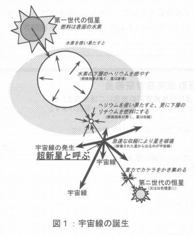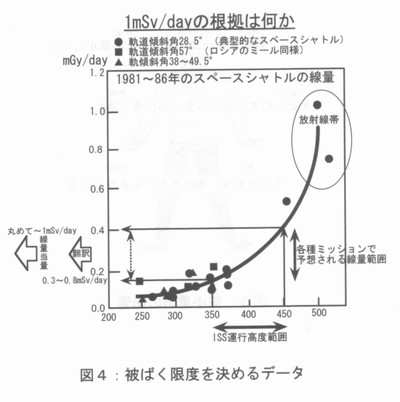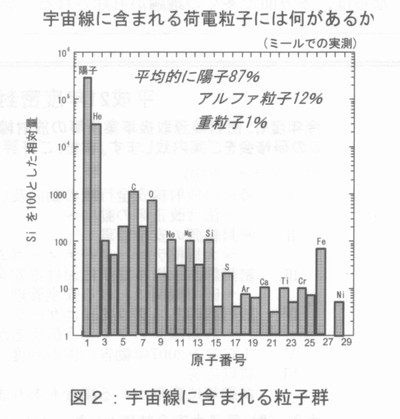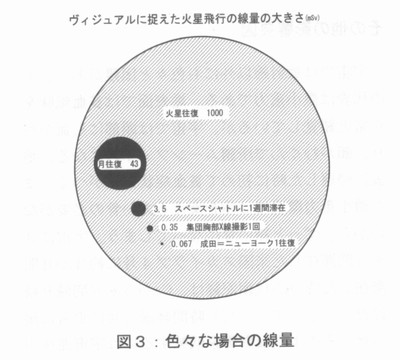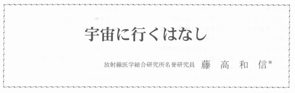 はじめに 我々の活動領域はどんどん拡大し、ついには宇宙をめざすようになった。慣れ親しんだ地表環境とは違って、宇宙線や紫外線が極めて強く、そこでの生命活動は厳しい。そもそも宇宙線とは何かという問題から考えたい。宇宙線の起源は恒星の歴史を反映したもので、その概略は下図のようになる。太陽のような恒星が終焉の時に起こす大爆発を全体として超新星と呼ぶが、その超新星から飛び出す粒子線は、まとめて宇宙線と呼ばれる。その主成分は陽子である。 ![]() 物理学的背景 宇宙線には様々な粒子成分が含まれ、またそのエネルギーは極めて高いものも含まれる(加速器出力の百万倍以上)。陽子が最も多く、ヘリウム・イオンがそれに次ぐ。色々な自然放射性核種の中では鉄イオンが目立って多い。宇宙線は荷電粒子なので、磁場があると、それを乗り越えるエネルギーが無いと磁力線に垂直方向には入れない。従って地球磁場の形(赤道で地表と平行、極地方で地表と鉛直)から容易に分かるように、赤道地方より極地方で宇宙線は強い。また宇宙線はロケットや人工衛星内部では航空機同様に多くの2次成分が発生するが、それもまとめて宇宙線と呼ばれている。 ![]() 太陽活動が盛んな時太陽表面から太陽粒子と呼ばれる荷電粒子群が飛び出すが、同時に太陽表面から磁力線を引っ張り出す。これが地球周辺を覆うため、超新星から来る宇宙線は邪魔されて、地表付近では減少する。即ち超新星起源の宇宙線の強さは太陽活動と逆相関なのである(太陽起源の粒子群も太陽爆発時に増えるが、超新星起源の宇宙線とはエネルギー分布が違う)。この太陽活動度は長期的には約200年毎の周期を持ち、もっと短期的には約11年周期で変動している。そして宇宙線の高エネルギーをシミュレートするのは加速器である。米国のNSRL、ドイツにある欧州共同利用施設で最大10Gev/nの出力が得られる他、日本のHIMACも800Mev/nながら活躍している。 生物学的背景 宇宙線陽子は2〜3剛こ一度、同一細胞をヒットする程度ある。他方、人体には約60兆個の細胞があるため、体のどこかに衝突するのは1秒間に3.3億回程度。生物学研究により、最近はバイスタンダー効果が提唱されており、直接衝突した細胞以外にも間接的な影響が認められる。従って、宇宙線にぷつかる人体には、細胞のがん化のリスクがあると考えられる。その被ばく量は、スペースシャトルに1週間滞在すると3.5mSV程度、火星往復では100omSVと推定されている。今までの知見を総合すると、70回火星往復をすると死に至る(がん細胞を殺すがん治療線量は約70SV)。但し、実際には火星往復には2年半という長時間をかけて飛ぶので、単位時間当りの被ばくが低くなり、上記にはもう少し余裕があるかも知れない。 宇宙飛行士の被ばく限度を決める為に、リスクという概念が用いられてる。地上におけるありふれた職業のリスクは3%と見られるが、これを宇宙飛行士に当てはめれば良い。これと比較するため食事による内部被ぱくを考えると、男性の場合で約30%のリスクである。リスクを3%に抑えるには宇宙での被ばく限度は1mSV/日とすれば良いことが分かっている。 ![]() ヴィジュアルに捉えた火星飛行の線量の大きさ4・ 他方、衛星で実測された線量の多くは1mSv/日 以下である。日本で解析したデータ(ロシア、中国の衛星を利用)も同様である。日本の公衆の法的限度は1mSV/日だから、もし宇宙飛行士を公衆と見なすなら、1日で限界に達してしまう。日本は今後月旅行は可能でも、火星旅行は無理ということになる。 ![]() その他の影響要因 宇宙では放射線以外にも色々と困難かおり、その代表は微小重力である。地表面では貧血気味を正常と錯覚しているが、宇宙では頭部にも血が回り、顔がむくんで所謂ムーンフェイスになる。地表に帰還した時に初めて貧血症状に気がつく。また微小重力環境では体を支える太い骨の必要がないから、ずっと細い骨になってしまう。宇宙に3ヶ月間滞在した米国スカイラブ4号に約3か月間滞在した時のCa代謝記録は、Caが3ケ月間減り続けたことを示す。ただし時間経過と共に正常に戻った。そのような影響を低減するには宇宙滞在中にも足腰の運動を欠かせないし、開発されたカルシウム薬剤も飲まねばならない。3ケ月間宇宙に滞在する予定の若田宇宙飛行士にも同様なことが言えよう。ただ、これら宇宙での症状を確実なものとして記述するには、もっと多数の地上・宇宙空間のデータが必要である。 ![]() まとめ 宇宙進出で人類がぶつかる困難は放射線だけでなく、ロケットエ学、通信、食料、排泄、文化、宗教等の問題もある。まだ多くの点を掘り下げる必要があり、それだけに大変面白い分野と言える。 参考文献 1)Cosmic Ravs, van Nostrand Reinhold Company, NewYork,1971 2)藤高和信、福田俊、保田浩志編:宇宙からヒトを眺めて,研成社,東京,2004年 |